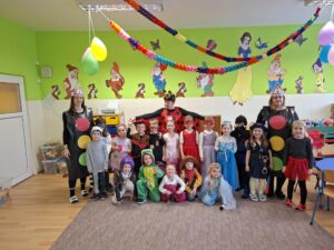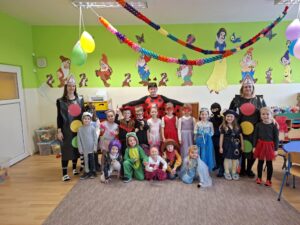 Dnešný deň 30.1. v MŠ bol spestrený karnevalovými kostýmami v obidvoch triedach. Zišli sa tu víly, princezny, včielky, policajti, stitch, Peppa pig. Deti si veselo zatancovali a za krásne pripravené masky boli odmenené sladkosťami.